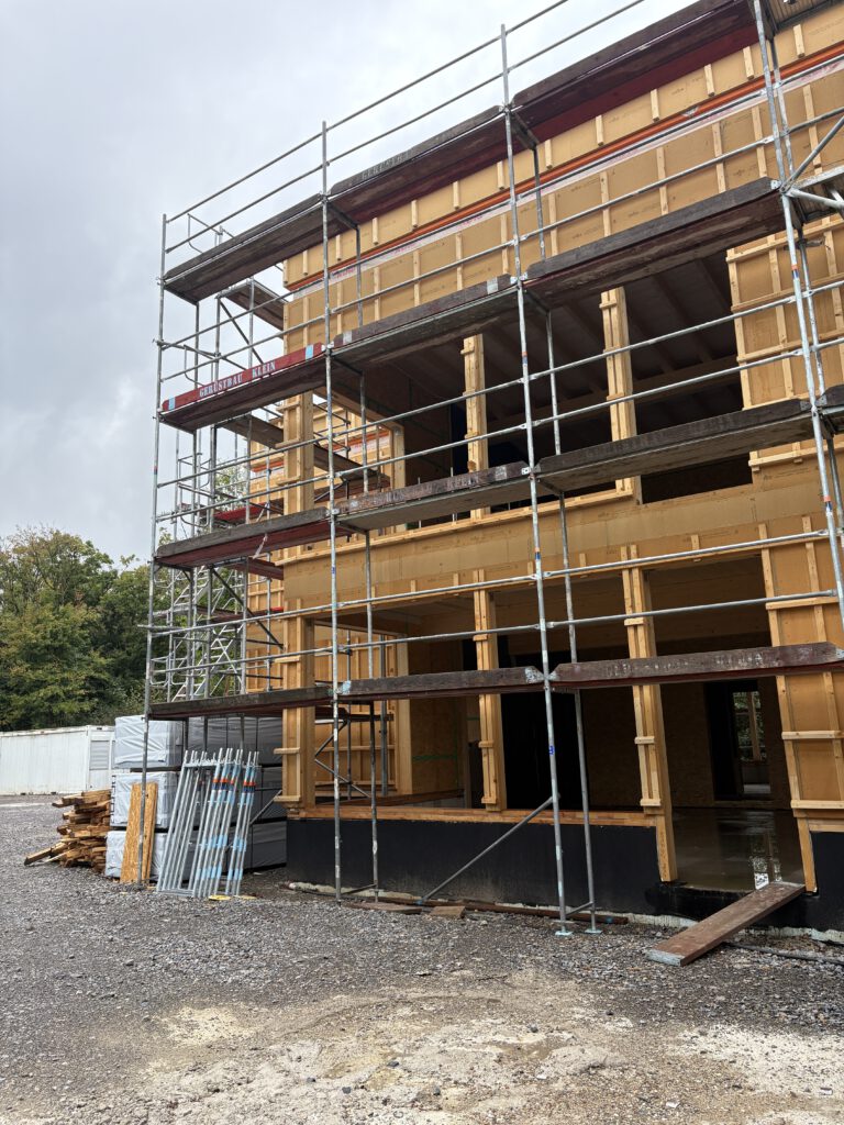 Dazu gehört eine hohe Planungssicherheit durch die Vorfertigung, geringe Bauzeiten und Nachhaltigkeit durch den nachwachsenden Baustoff Holz. Die Ausführung mit Holzfaser-Dämmstoffen ermöglicht diffusionsoffene Bauweisen, die Fehleranfälligkeit auf Baustellen wird minimiert.